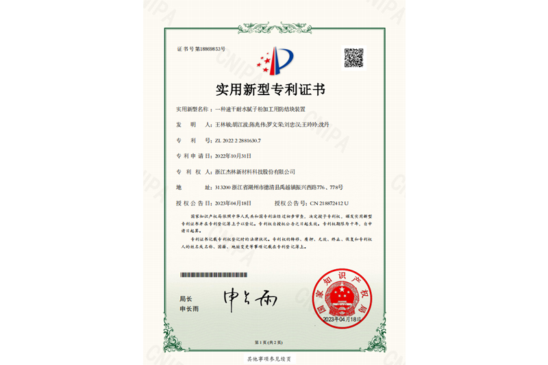 防霉防潮抗菌膩?zhàn)臃奂庸び妙w粒篩料裝置-實(shí)用新型專(zhuān)利證書(shū)